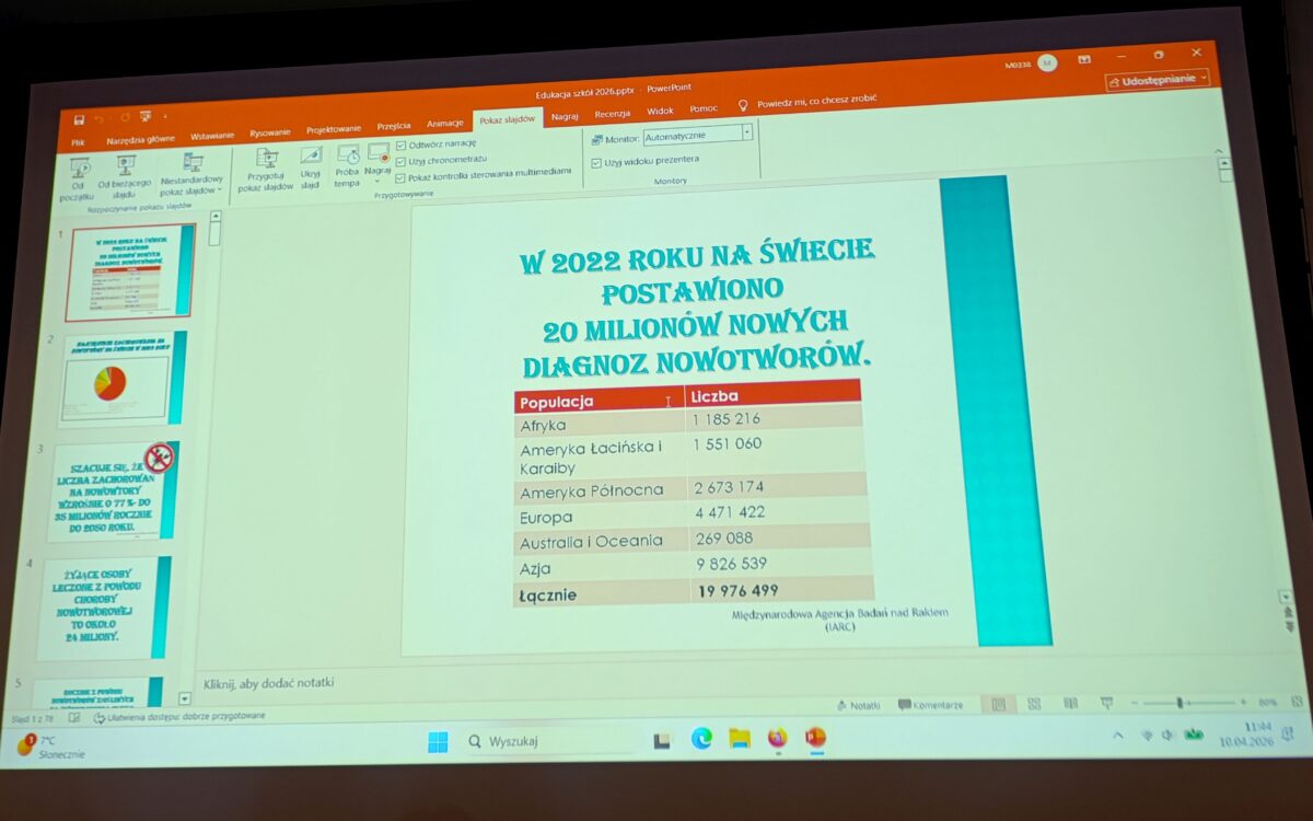 10 kwietnia, uczennice klasy 3 TŻ oraz 1THOMt uczestniczyły w warsztatach profilaktycznych w Zakładzie Profilaktyki i Promocji Zdrowia w Centrum Onkologii w Bydgoszczy.