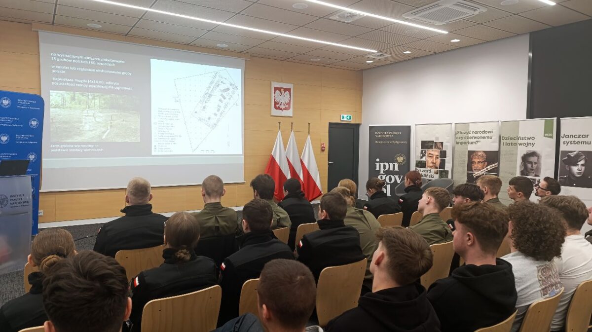 Kolejnym punktem programu była wizyta w IPN, gdzie uczniowie uczestniczyli w wykładzie poświęconym zbrodni katyńskiej. Prelekcja przybliżyła historyczne tło wydarzeń, losy polskich oficerów oraz znaczenie prawdy o Katyniu dla współczesnej pamięci narodowej.